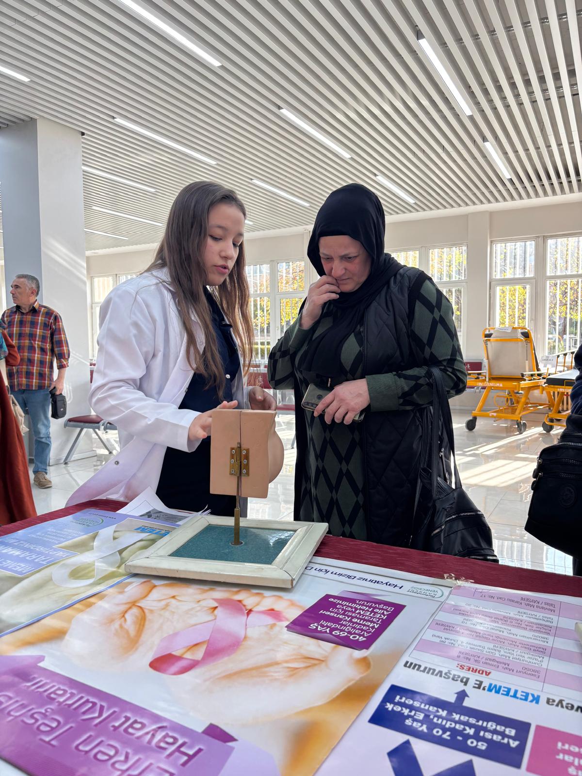 Etkinlikte, genel cerrahi ana bilim dalı ile birlikte hasta ve hasta yakınlarına erken teşhisin önemi ve meme muayenesi anlatıldı. Etkinlikte, toplumda farkındalık oluşturarak erken tanı sayesinde yaşam kurtarmanın önemine dikkat çekildi.