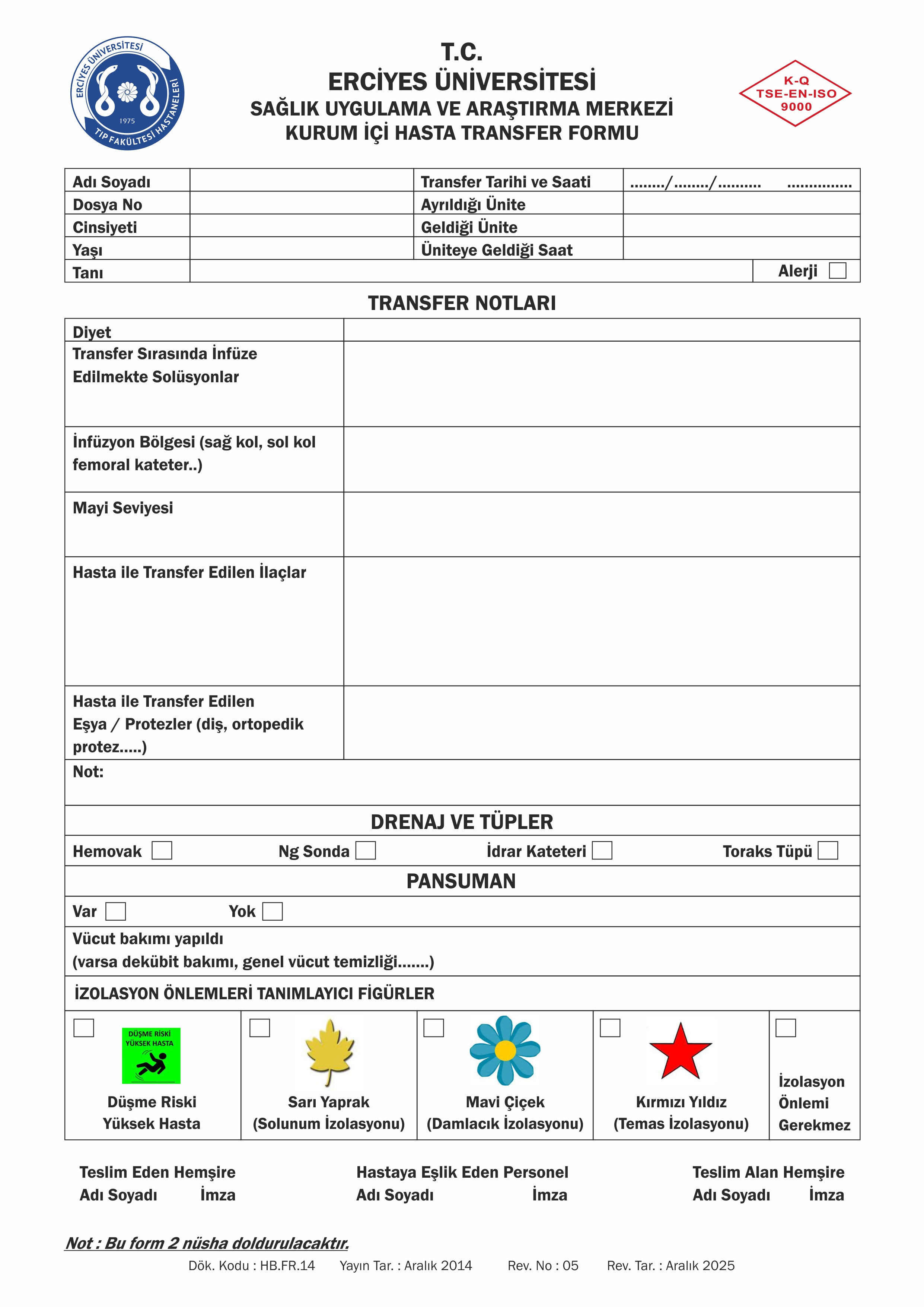 - Kurum İçi Hasta Transfer Formu Yeni 16 Aralık 2025 Salı